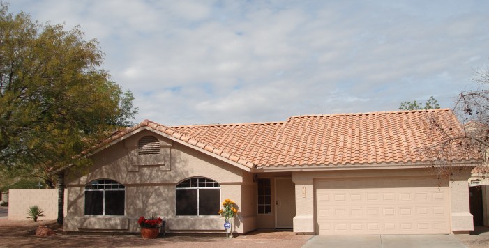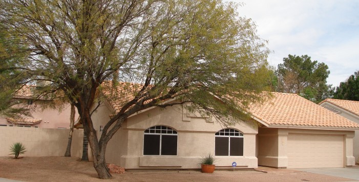 TRADITIONAL SALE & MOVE-IN READY. WELL MAINTAINED SINGLE LEVEL ON OVER-SIZED CORNER LOT. FEATURES FRONT SECURITY DOOR, NORTH BACKYARD, BLACK PRIVACY SUN SCREENS ON WEST & SOUTH WINDOWS, AND EXTERIOR PAINT 2005. GREAT ROOM, BEIGE/ WHITE TILE FLOORING, 2'' WOOD BLINDS, MASTER BEDROOM SPLIT W/ WALK-IN CLOSET, NEW COPPER PLUMBING, & UPDATED INTERIOR LIGHTS. FRENCH DOOR OUT OF GREAT ROOM TO LARGE COVERED PATIO, GRASS & FLAGSTONE OUT BACK, & OUTDOOR WOOD BURNING KIVA FIREPLACE. OTHER FEATURES INCLUDE 14 SEER TRANE HEAT PUMP (2006), NEWER MAYTAG SMOOTH COOK TOP STOVE & ISLAND IN KITCHEN.