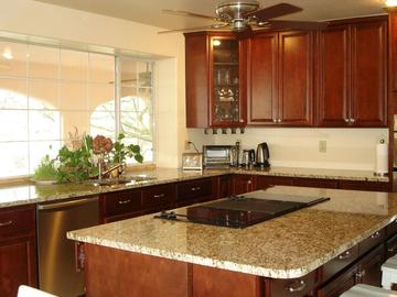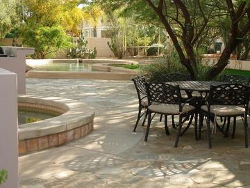 LARGE ENTRY WAY WITH FORMAL LIVING & DINING ROOMS & COFFERED CEILINGS AND WOOD PLANK FLOORING & FIREPLACE IN LIVING ROOM. GUEST WING DOWNSTAIRS, HUGE LAUNDRY ROOM WITH SINK, FAMILY ROOM WITH WET BAR AND FLOOR-TO-CEILING FIREPLACE. LARGE MASTER BEDROOM HAS REFRIGERATOR, FIREPLACE, & ATRIUM DOORS OUT TO BALCONY. 3.25-CAR GARAGE AND 2 NEW WATER HEATERS ('08 & '09). KITCHEN REMODELED IN 2008 FEATURES SLAB GRANITE, ISLAND WITH SMOOTH COOK TOP & GRILL, STAINLESS STEEL APPLIANCES INCLUDING WALL OVEN, MICROWAVE, REFRIGERATOR, DISHWASHER, SINK, REVERSE OSMOSIS, & NEW CHERRY WOOD CABINETS. KITCHEN IS ALSO COMPLETE WITH WALK-IN PANTRY AND BAYED BREAKFAST NOOK. THE EAST FACING BACKYARD HAS LUSH DESERT LANDSCAPING, GRASS PLAY AREA, LARGE MEDITATION GARDEN AND FOUNTAIN, LARGE PEBBLE FINISHED SALT WATER POOL WITH ROCK FEATURE, SEPARATE SPA, BUILT-IN BBQ, COVERED PATIO, ADDITIONAL SLATE PATIO WITH OUTDOOR FIREPLACE.