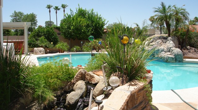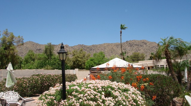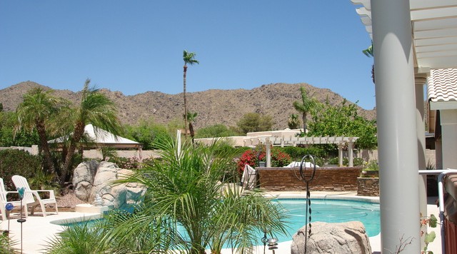 GORGEOUS UPDATE. PROPERTY ON PRIME ESTATE LOT WITH THE MOST FABULOUS ENTERTAINERS BACKYARD SURROUNDED BY BEAUTIFUL SOUTH MOUNTAIN SCENERY. CLASSY REMODEL FEATURES GRANITE SLAB KITCHEN & BATH COUNTER TOPS, GORGEOUS WIDE PLANK CHERRY WOOD FLOORING, STAINLESS STEEL APPLIANCES, 340 BOTTLE WINE RED/WHITE ZONED REFRIGERATOR, 8'' CEILING CROWN MOLDING, GUEST BATH WITH VESSLE SINK. BRIGHT & CHEERY FLOOR PLAN. MASTER BEDROOM SPLIT WITH NURSERY/LIBRARY ON ONE SIDE, HALF POOL BATH, LARGE GUEST ROOM WITH PRIVATE BATH. CHEFS KITCHEN WITH SUB-ZERO, LARGE WALK-IN PANTRY & SPACIOUS BREAKFAST ROOM. ELEGANT FORMAL DINING ROOM. UPDATED INTERIOR LIGHTING. SEPARATE LAUNDRY ROOM, BIG FAMILY ROOM WITH FIREPLACE, BEDROOM/ MEDIA ROOM. DRAMATIC CURVED INTERIOR WALLS. OMG AMAZING PARTY BACKYARD HAS IT ALL! LARGE ''KITCHEN," 'RAMADA, ROCK WATERFALLS, 5' DEEP SALT WATER POOL, STACKED STONE PROPANE GAS FIREPLACE, FABRIC SHADES, SEPARATE SPA, MULTIPLE PATIOS, LUSH LANDSCAPE. WOW!
