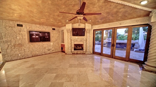 FABULOUS RECENT REMODEL WITH TOO MANY UPGRADES TO LIST. ELEGANT TUSCAN GATED ESTATE PROPERTY NESTLED INTO QUIET ENCLAVE, SURROUNDED BY IMPOSING MOUNTAINS. 3 BEDROOMS PLUS COMPACT WOROUT ROOM, MASTER BEDROOM FEATURES 2 SEPARATE FULL BATHS (TOTO TOILETS, SPA TUBS, MEGA SHOWERS, VESSEL SINKS, ET AL) & CANTERRA STONE FIREPLACE IN MASTER. CHEFS KITCHEN BEYOND EXPECTATIONS INCLUDES COPPER FARM-HOUSE SINK, MIELE & WOLFE APPLIANCES, & PROPANE GAS COOKING. EXTENSIVE USE OF CANTERRA STONE, MARBLE AND GRANITE THROUGH OUT. FULLY APPOINTED GARAGES WITH CUSTOM CABINETRY & SUB ZERO REFRIGERATOR. LUSH PRIVATE, PARTY-PERFECT BACKYARD WITH PREFERRED EASTERN EXPOSURE COMPLETE WITH FOUNTAINS, FIRE BOWLS, PUTTING AREA, TIERED PATIOS & MATURE VEGETATION.