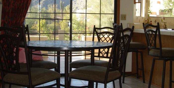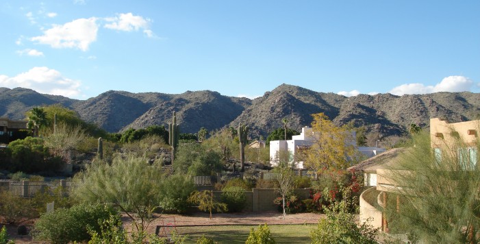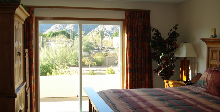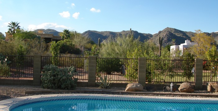 LOCATED ON A HILLSIDE LOT & BACKING TO DESERT ARROYO W/ SPECTACULAR PANORAMIC MOUNTAIN VIEWS. MASTER BEDROOM WITH WALK-IN CLOSET & ARCADIA DOOORS OUT TO BALCONY. KIDS' FULL BATH WITH DOUBLE SINKS, 4TH BEDROOM UP WITH NATURAL OAK PLANK FLOORS, 4 BEDROOMS UPSTAIRS. PLANTATION SHUTTERS & FORMAL LIVING ROOM & DINING ROOM WITH NEWER CARPET. NEW INTERIOR LIGHT FIXTURES. KITCHEN WITH NEWER STAINLESS STEEL MICROWAVE, STAINLESS STEEL SINK, JENNAIRE DOWN DRAFT COOK TOP WITH GRILL, OAK CABINETS & PANTRY. NEWLY ADDED ''VIBRANCE'' WATERPROOF WIDE PLANK WOOD LAMINATE FLOORING. BIG FAMILY ROOM WITH WOOD-BURNING FIREPLACE AND LAUNDRY ROOM OUT TO GARAGE. GLORIOUS BACKYARD WITH TILED BALCONY, DIVE POOL (W/ CHILD SAFETY NET), SIDE PLAY YARD, ADDITIONAL COVERED PATIO OFF FAMILY ROOM.