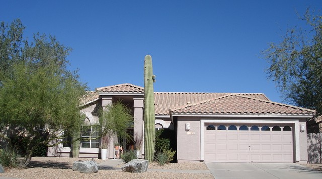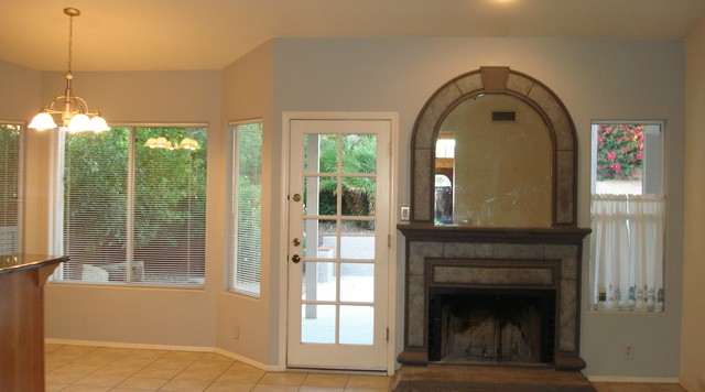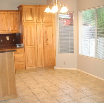 UPDATED & MOVE-IN READY IN GREAT LOCATION. GORGEOUS ''NEW'' KITCHEN HAS WARM STAINED HICKORY CABINETS, SLAB GRANITE COUNTERS, STAINLESS STEEL SMOOTH COOK TOP RANGE W/ DOUBLE OVENS, STAINLESS STEEL MICROWAVE, STAINLESS STEEL DISHWASHER & BLACK ''GRANITE'' UNDER MOUNT SINK. STONE-LOOK TILED FLOORING, ROOMY BAYED BREAKFAST NOOK & FAMILY ROOM W/ FIREPLACE. LARGE MASTER BEDROOM W/ FRENCH DOORS, VAULTED, OPEN & BRIGHT FLOOR PLAN. 4TH BEDROOM IS OFFICE WITHOUT CLOSET & LAUNDRY ROOM WITH CABINETS. NORTH FACING BACKYARD FEATURES 5' DEEP POOL, RAISED GARDENS & EASY-CARE DESERT LANDSCAPE. NEWER HEAT PUMP AND FRESH INTERIOR PAINT.