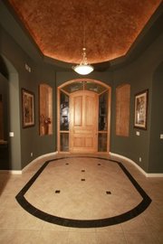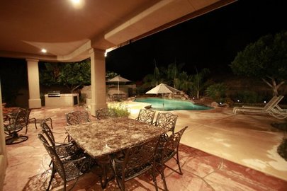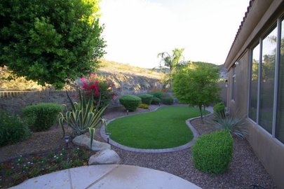 SECLUDED GATED HILLSIDE LOT IN CANYON VERDE SURROUNDED BY MOUNTAINS. CLASSY & WELL MAINTAINED 3-2 SPLIT. FIFTH BEDROOM IS DONE AS LIBRARY W/ CUSTOM CHERRY DESK & SHELVES, DOUBLE ENTRY DOORS, & BEAUTIFUL HARDWOOD FLOORING. UPGRADES INCLUDE; 16" PORCELAIN STONE-LOOK TILE THROUGH OUT, SOLID CORE SCROLL DESIGN INTERIOR DOORS, COFFERED CEILINGS W/ RECESSED LIGHTING. LARGE LAUNDRY ROOM W/ 42" MAPLE CABINETS, COUNTER SPACE & SINK. ALL SECONDARY ROOMS W/ WALK- IN CLOSETS, 2 W/ JACK-N-JILL BATH, 1 W/ PRIVATE POOL ACCESS BATH. HUGE KITCHEN FEATURES SLAB GRANITE COUNTERS, 42" MAPLE CABINETS, HI-END APPLIANCES, PANTRY, & LARGE BREAKFAST ROOM. GORGEOUS PRIVATE BACKYARD W/ RETRACTABLE FABRIC AWNING, NATURAL FLAGSTONE PATIOS, LUSH DESERT LANDSCAPE, BUILT-IN BBQ, NATURAL GAS FIREPLACE, LARGE GRASS PLAY AREA, & 5' DEEP PEBBLE TEC POOL W/ ROCK WATERFALL. NATURAL GAS HEAT, HOT WATER, & STONE SURROUND FIREPLACE IN FAMILY ROOM.