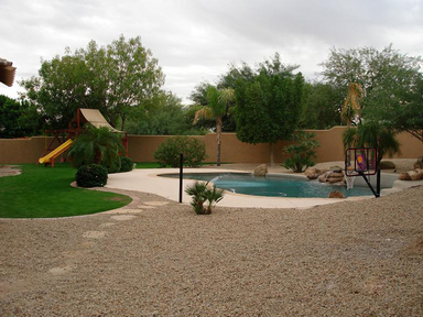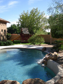 Surrounded by mountains w/ ambient city lighting in prime location on a private corner lot. Fabulous master retreat w/ huge custom organizer closet, 2-way fireplace, oil-rubbed bronze fixtures, & granite slab in master bath. Library/ bedroom across from master w/ walk-in closet and bathroom. All new carpet, 7" classy custom base boards, & int. & ext. beige/ white paint (10/ 2006). 3 1/2 car garage w/ A/C workshop. Gourmet dream kitchen has it all including large breakfast room. Upstairs has decorative "Juliet" curved iron balcony overlooking grand entry way, Gameroom w/ bar, media room, library/ office w/ built-in book cases, & bedroom w/ private bath & balcony overlooking backyard w/ 5' deep play pool, childs play area w/ swing set, & mountain views!
