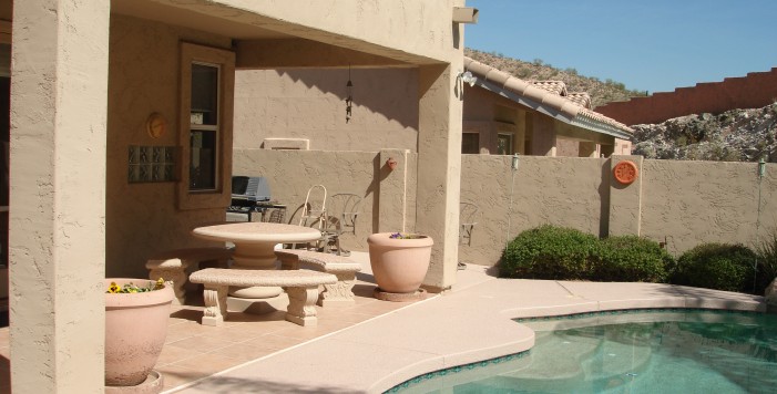 WELL MAINTAINED BY ORIGINAL OWNER AND LOCATED ON BEAUTIFUL PRIVATE SOUTH FACING HILLSIDE LOT. UPDATED KITCHEN FEATURES SLAB GRANITE COUNTER TOPS & FULL WALL GRANITE BACKSPLASH, ''NEW'' STAINLESS STEEL SMOOTH COOKTOP RANGE & STAINLESS STEEL DISHWASHER (2/2010). FAMILY ROOM W/ PROPANE GAS FIREPLACE AND WALNUT PLANK LAMINATE FLOORNG IN KITCHEN. MASTER BEDROOM W/ LARGE BATH & WALK-IN CLOSET. EXTERIOR PAINT 2005. 5' DEEP PEBBLE FINISHED POOL & SPA W/ ROCK WATERFALL, SMALL GRASS AREA, MATURE LANDSCAPE, & COVERED PATIO IN BACKYARD. EASY-CARE FRONT DESERT LANDSCAPE AND DOUBLE SIDE GATE FOR STORAGE AREA. LOCATED IN THE LOVELY FOOTHILLS W/ 2 PUBLIC GOLF COURSES (CLUB WEST & THE FOOTHILLS GOLF COURSE).