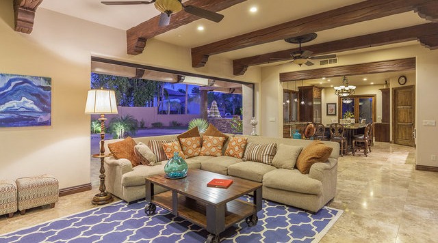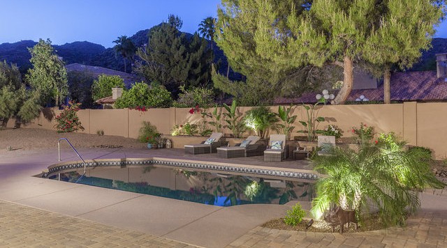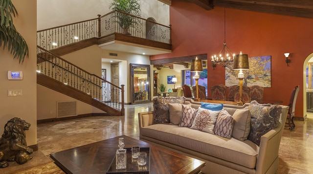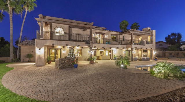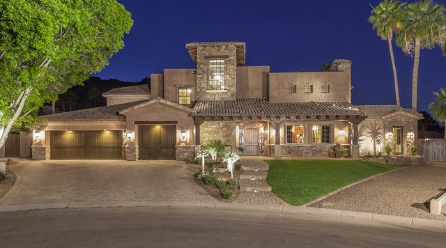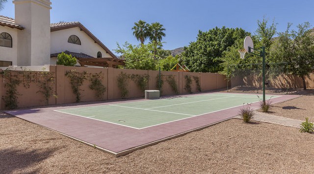 5,727 square feet of fabulous. Fresh and open w/ certificate of occupancy dated Feb. 2012. Quality through out. Wood windows, wood & stone flooring, huge chef's kitchen, 5 bedrooms, 4 full & 2 half baths, 29.5 ft vaults, downstairs guest suite w/ private bath and living room, big room to use for teen hideaway, gym, professional office or theater with outside entry door in front along the east side (great for the teens front entry or client access) and wine room option. All of this and more on 25,000 sq ft cul-de-sac lot. Huge back yard with a real basket ball court, large pool, expansive covered patio, outdoor living room with imposing mountain views.