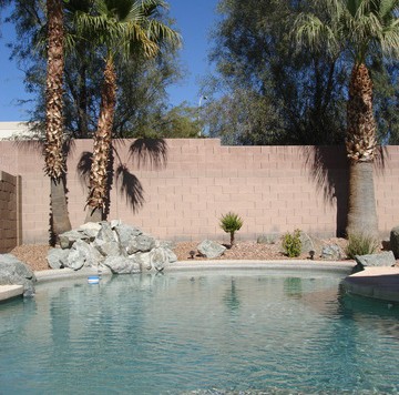 BEAUTIFULLY MAINTAINED & UPDATED IN GREAT LOCATION. GUEST BEDROOM/ OFFICE WITH WOOD LAMINATE FLOORS & 3/4 BATH ON THE MAIN FLOOR. RECENT INTERIOR & EXTERIOR PAINT. GREAT CURB APPEAL! MASTER BEDROOM & 3 KIDS BEDROOMS UP. CUSTOM FRENCH SECURITY ENTRY DOOR, RECENT LARGE STONE-LOOK TILE FLOOR & NEWER CARPET. UPDATED KITCHEN FEATURES SLAB GRANITE COUNTER TOPS, LARGE CENTER ISLAND, NEW APPLIANCES INCLUDE SMOOTH COOK TOP RANGE (WITH NATURAL GAS OPTION) STAINLESS STEEL UNDER MOUNT SINK & ROOMY BREAKFAST AREA. BIG FAMILY ROOM WITH NATURAL GAS FIREPLACE. LAUNDRY ROOM WITH CABINETS & SINK AND MASTER BEDROOM WITH 2 WALK-IN CLOSETS & UPDATED SPACIOUS MASTER BATH. BEAUTIFUL PRIVATE NORTH BACKYARD HAS FULL LENGTH COVERED FAUX FLAGSTONE PATIO, 5' DEEP PEBBLE FINISH PLAY POOL WITH ROCK WATERFALL, GRASS PLAY AREA & LUSH MATURE LANDSCAPE. 2 TRANE A/C UNITS, 2 NATURAL GAS FURNACES, NEWER INTERIOR LIGHT FIXTURES, & UPDATED KIDS BATH. TRADITIONAL SALE.