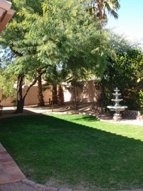 VAULTED, OPEN, & FLOODED W/ NATURAL LIGHT. FRONT BEDROOM IS DONE AS DEN W/ DOUBLE DOORS & MASTER BEDROOM W/ DOUBLE DOOR ENTRY, SEPARATE TUB & SHOWER WITH DOUBLE SINK VANTY AND WALK-IN CLOSET. LARGE LAUNDRY ROOM HAS REFRIGERATOR, STONE-LOOK TILE & CARPET, NEWER HOT WATER HEATER, & WHITE 2 INCH BLINDS THROUGH OUT. KITCHEN HAS WHITE APPLIANCES INCLUDING SMOOTH COOK TOP, DISHWASHER, & STOVE. ALSO INCLUDES TRASH COMPACTOR AND INSTANT HOT WATER AT KITCHEN SINK. BACKYARD W/ GRASS PLAY AREA, MATURE SHADE TREES, CITRUS, & FOUNTAIN.