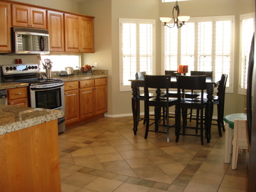 PERFECTION ! CLASSY UPDATED, EXPANDED, BRIGHT, LIGHT & IMMACULATE ON HUGE PRIVATE LOT. THE 418 SQ. FT. MASTER SUITE ADDITION HAS ITS OWN HEAT PUMP FEATURES STONE FLOORING, CARMEL MAPLE CABINETS, SLAB GRANITE, LARGE SOAKING TUB, RAISED SINKS, BIG SHOWER, & OIL RUBBED BRONZE FIXTURES. LARGE INVITING REMODELED KITCHEN HAS STAINLESS STEEL APPLIANCES, CARMEL MAPLE CABINETS, SLAB GRANITE, SMOOTH COOK TOP RANGE, BAYED BREAKFAST NOOK &PLANTATION SHUTTERS. ''NEW'' SECOND BATH W/ SLAB GRANITE, AMOIRE SINK, BRONZE FIXTURES & FRAMED MIRROR. ROOMY GREAT ROOM W/ LIGHT NATURAL MAPLE LAMINATE FLOORING. RECENT EXTERIOR PAINT. HUGE PRIVATE BACKYARD HAS LARGE GRASS AREA, KIDS PLAY GYM & LOVELY EXPANSIVE BLOCK PATIO. ALL THIS IN THE MOUNTAIN PARK RANCH COMMUNITY W/ 4 POOLS (1 HEATED YEAR ROUND), SPORT COURTS, PICNIC AREAS & PLAY GROUND. YOU WILL BE THRILLED!
